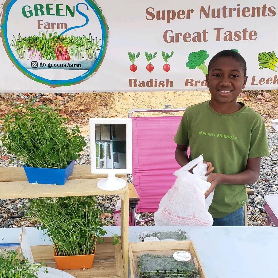 Joshua is 11 years old and can tell you all about microgreens! He also works with the setup and break down of the tent and he has a special gift for organizing and setting up the display. His favorite microgreens are the spice mix.